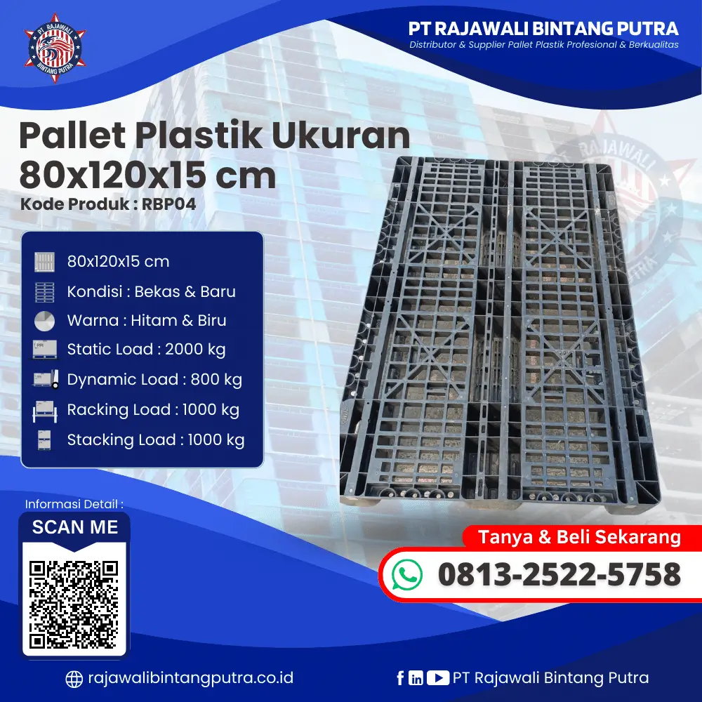 PT Rajawali Bintang Putra merupakan perusahaan yang fokus pada penyediaan pallet plastik bekas maupun baru dengan harga yang terjangkau namun tetap mengutamakan kualitas dan pelayanan yang terbaik. Kami melayani berbagai kebutuhan pelanggan di berbagai sektor industri, memberikan solusi penyimpanan dan pengangkutan barang yang efisien. Salah satu produk unggulan kami adalah Pallet Plastik RBP04, yang memiliki kualitas tinggi dan sangat cocok untuk berbagai keperluan logistik dan penyimpanan barang.